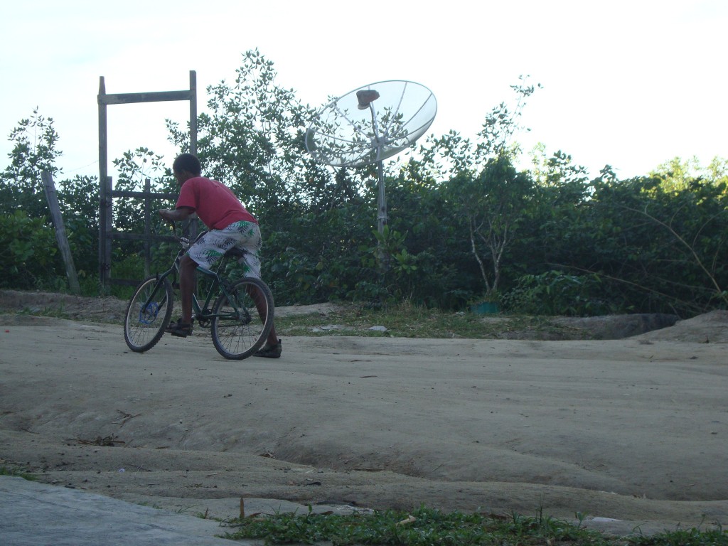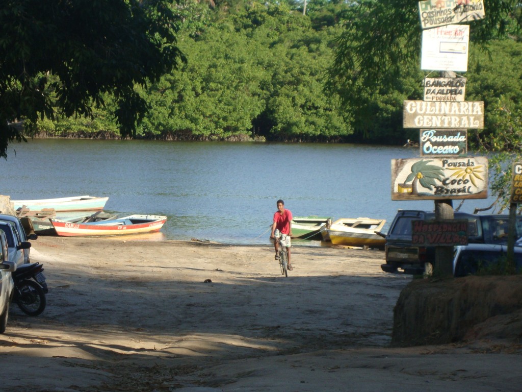 Estava esperando o ônibus quando vi dois meninos brincando com uma bicicleta na entrada da balsa para Caraíva (BA). Eles revezavam nas “voltinhas” de bike, sempre inventando manobras, derrapagens e caminhos. Um deles eu consegui clicar.