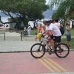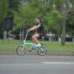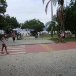 Na última segunda-feira estive no Aterro do Flamengo (Rio de Janeiro) pra uma volta de bicicleta. O Aterro um dos lugares mais legais que já pedalei. Não pelo desafio do terreno, mas pela beleza e pela quantidade de pessoas pedalando juntas. É um verdadeiro festival de bicicletas de todos os tipos. Separei abaixo algumas fotos tiradas pela Ciça, e um vídeo da pista interna do Aterro. Saí da rotatória que divide o Aterro com a ciclovia da Praia de Botafogo e fui até a Marina da Glória (cerca de 3km).
